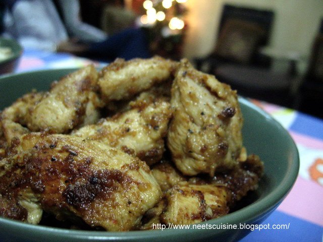 1. Mix all the marinade ingredients, rub it on chicken pieces and keep in fridge for an hour.